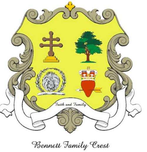 In 2009, to further strengthen our bond as a family and our identity, the Bennett Family Crest was created by Kelly Bennett. The symbolism of the crest was designed to identify the uniqueness of the Bennett Family and the many achievements and attributes associated with the name.